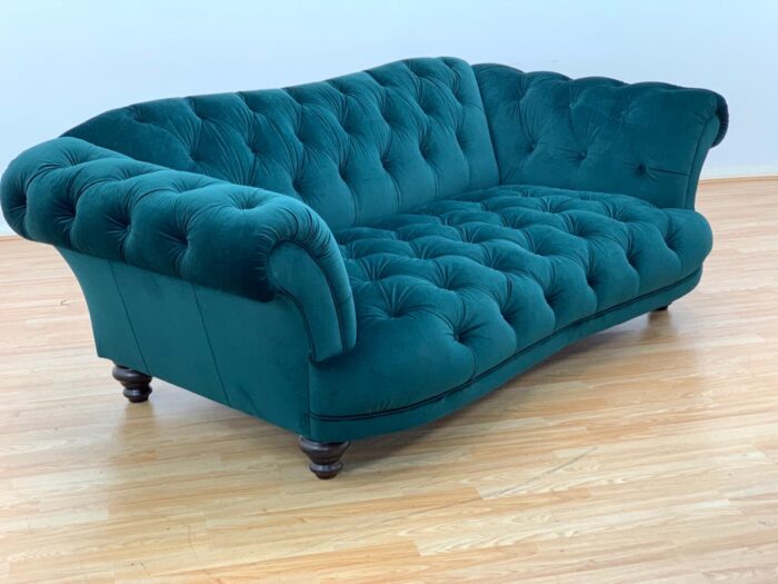 Our Oskar sofa provides a modern twist on a classic chesterfield design. Its subtle curves, scrolled arms, deep seats and low base are designed to ensure the perfect combination of luxury and comfort. Each item is hand crafted from start to finish, from its stunning deep buttoned features to its high quality soft reflex foam seating, all of which is supported by a solid timber frame.